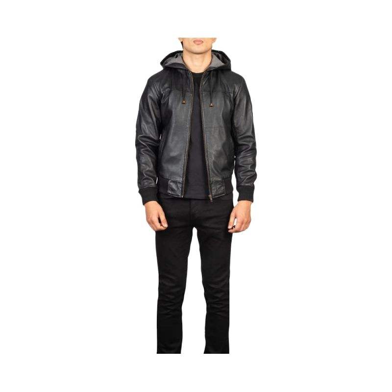 Veste en cuir à capuche