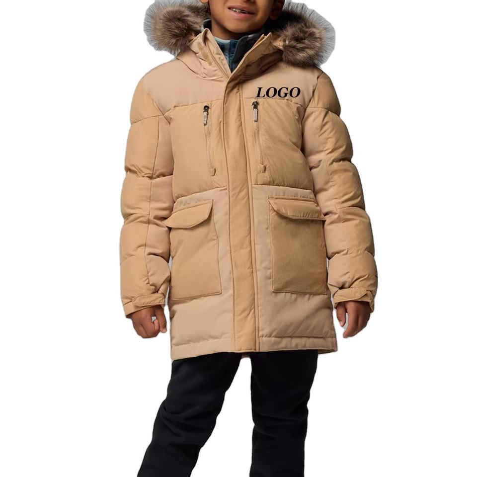 Blouson matelassé à capuche pour garçons avec fermeture éclair, design décontracté pour l'hiver, manches longues avec logo personnalisé 2026