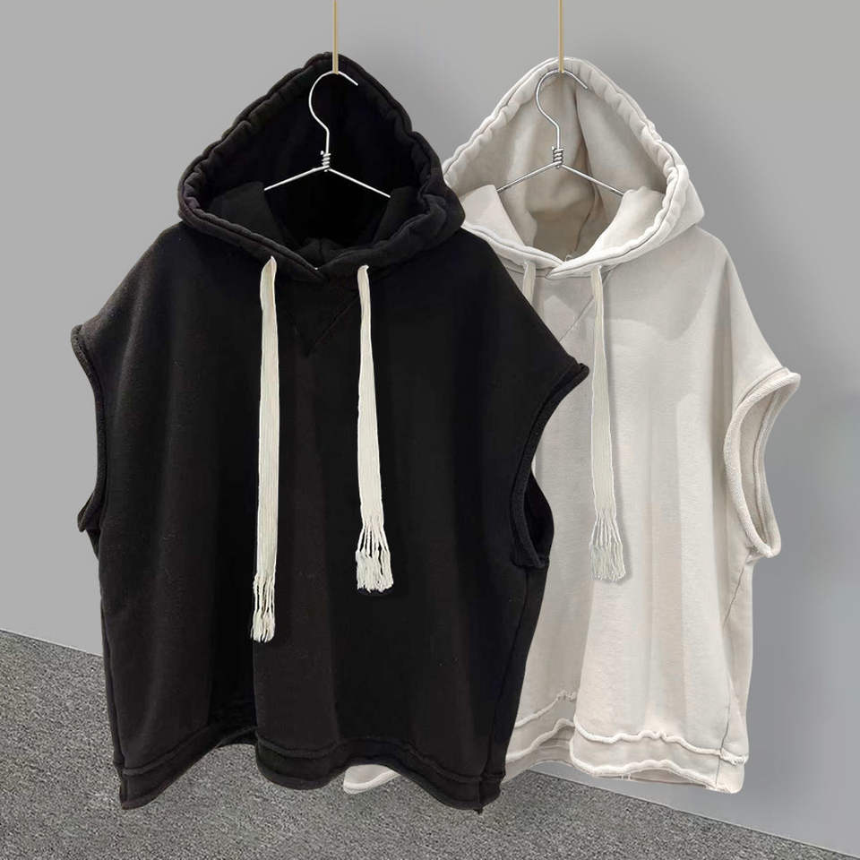 Débardeur Homme à Capuche Sans Manches en Polyester Anti-Boulochage, Traitement Infroissable, Couleur Unie, Style Décontracté Ample pour l'Été