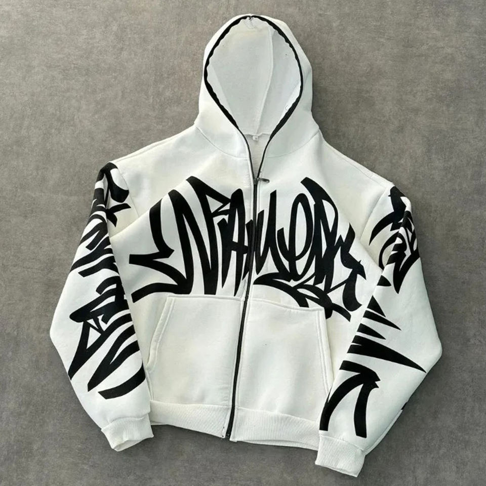 Product Name:Graffiti Print Zipper Hoodie