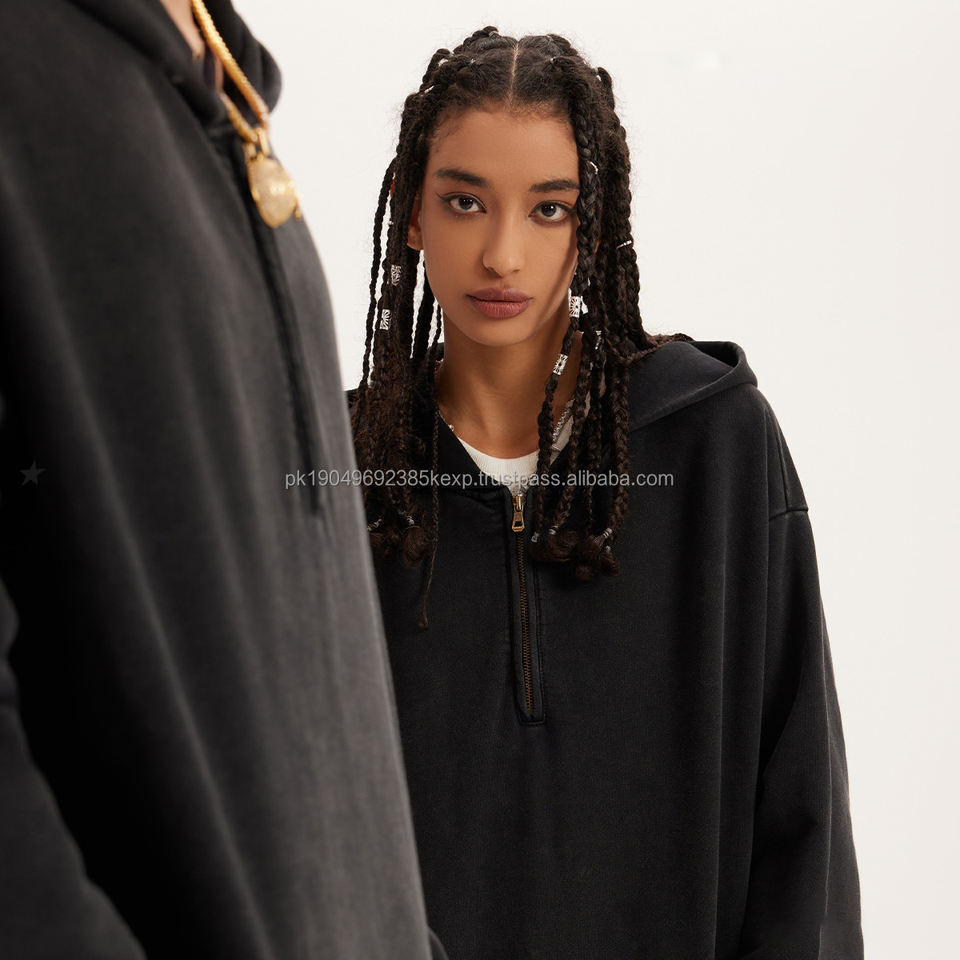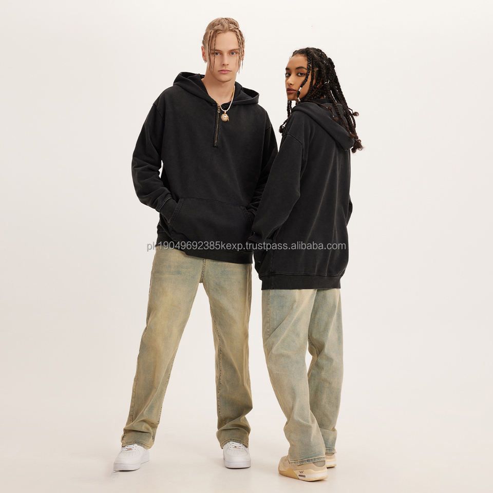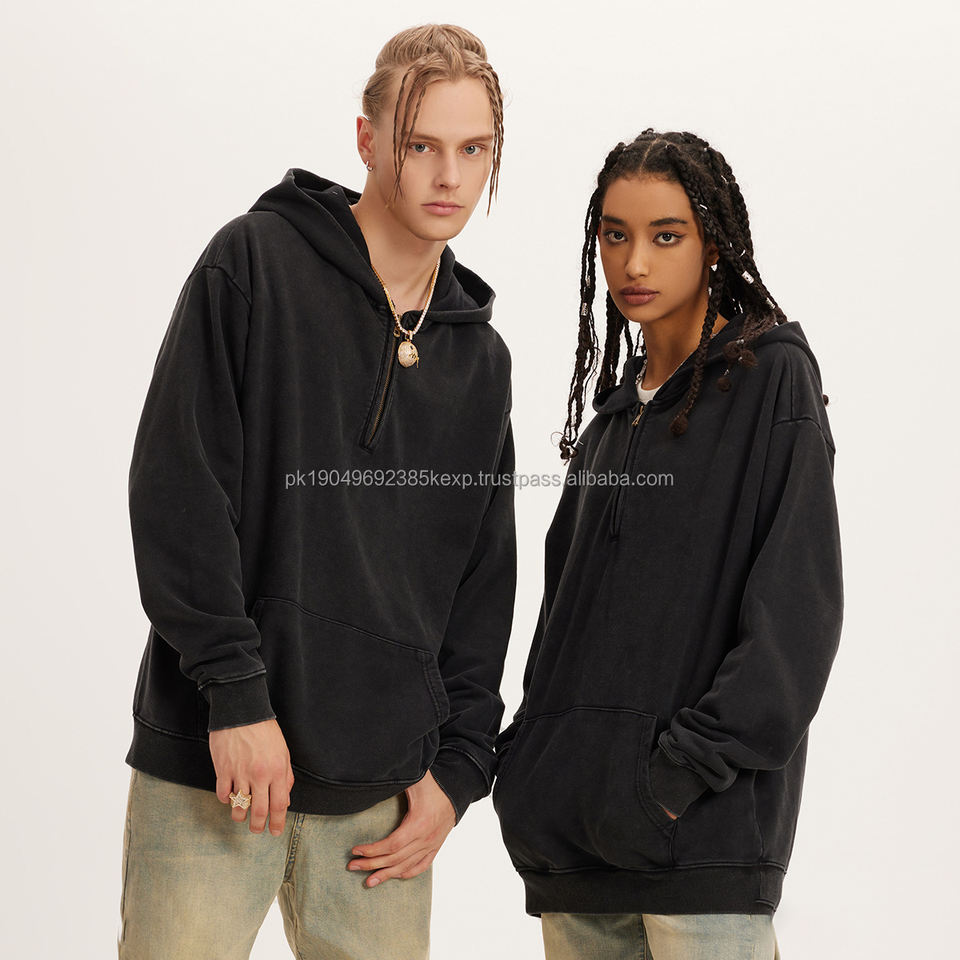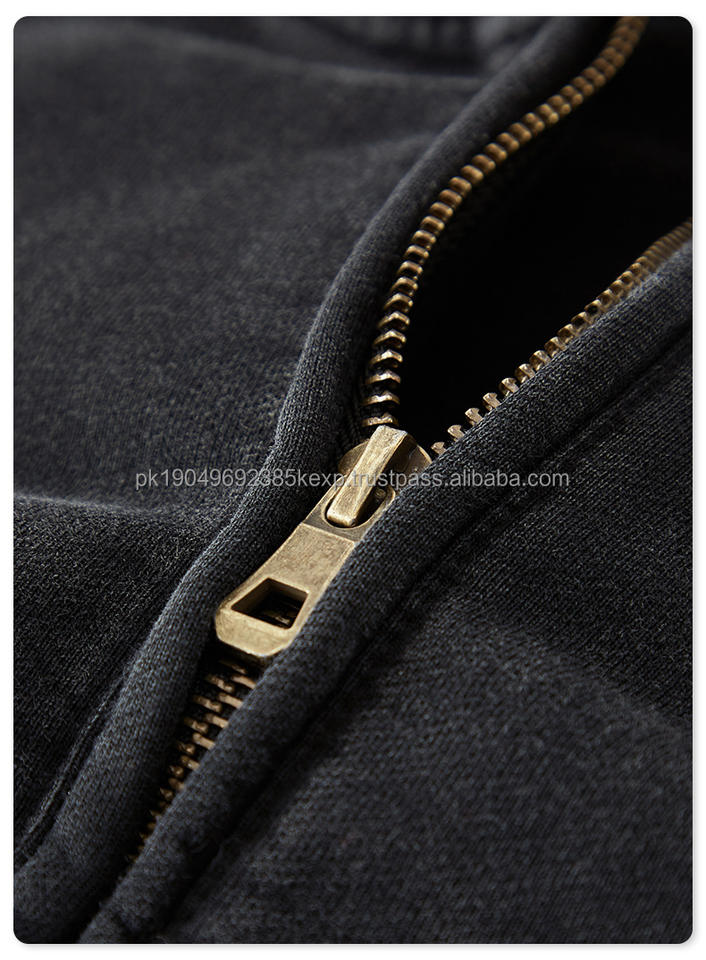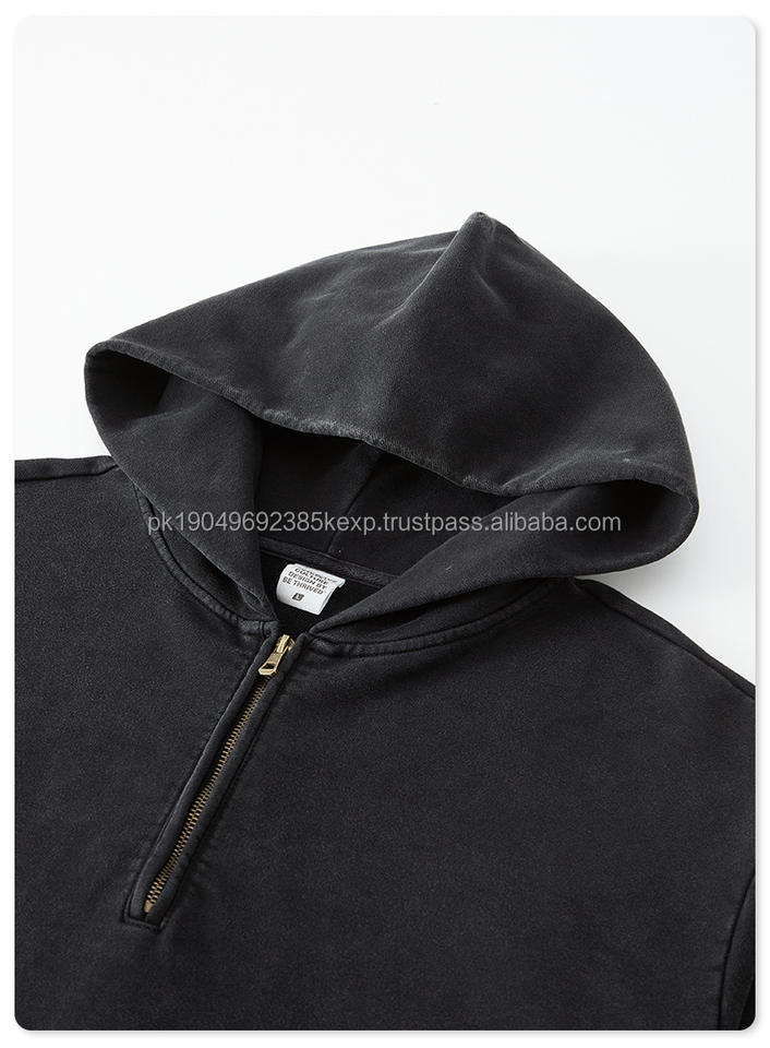Hoodie Manufacturer Custom 440g 100% Cotton Zip Collar Vintage Washed Hoodies Men's Hoodies