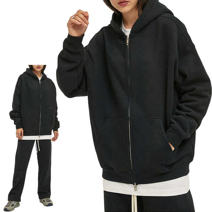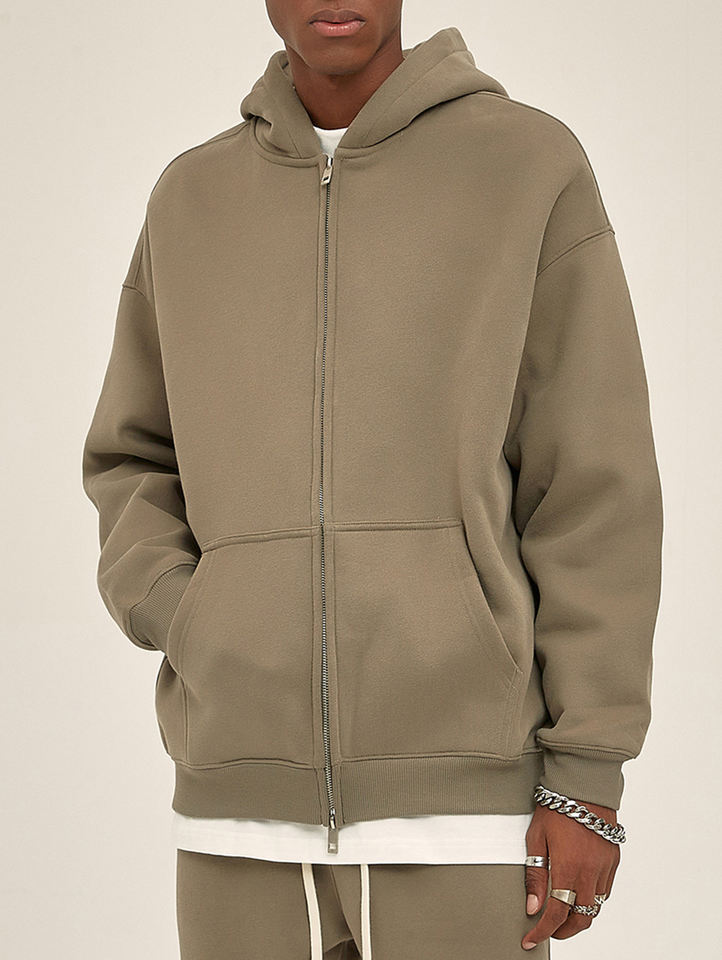 Sweat à capuche zippé personnalisé avec logo, 350 g/m², poids lourd, sweat à capuche zippé intégral pour homme, sweat à capuche zippé uni surdimensionné pour homme