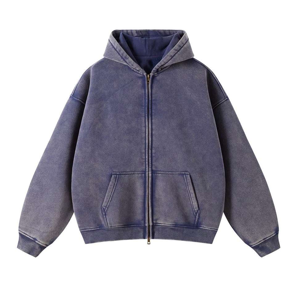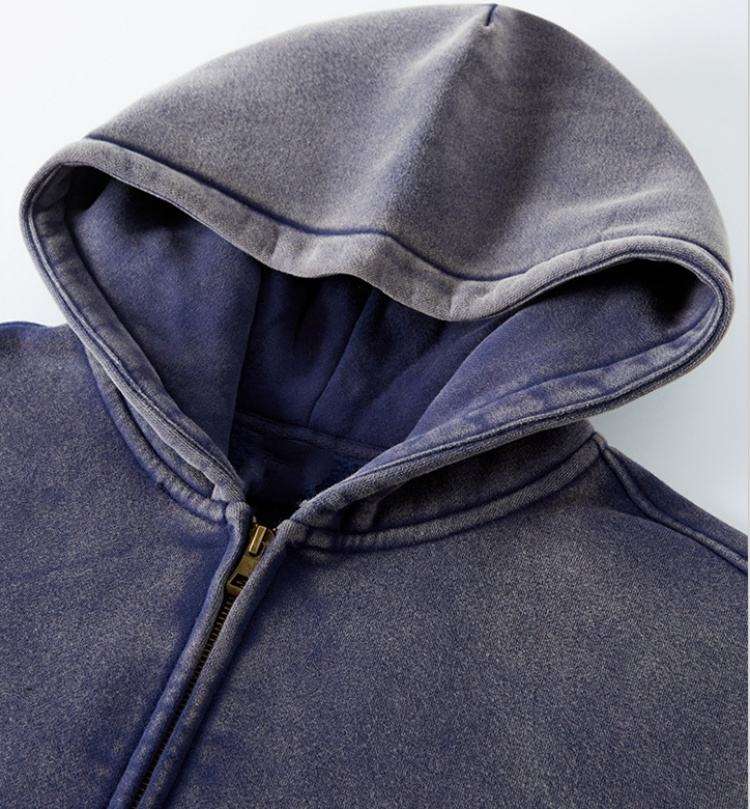 Sweat à capuche pour hommes de haute qualité personnaliser en gros lourd lavage Vintage sweat à capuche zippé gros quantité minimale de commande bas broderie de détresse
