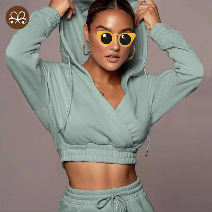 Sweat à capuche, col en V, ensemble de sport pour joggeurs, pantalon de survêtement, avec Logo personnalisé, nouveau Design