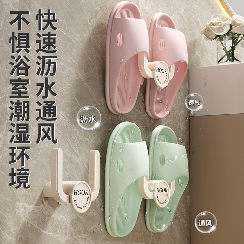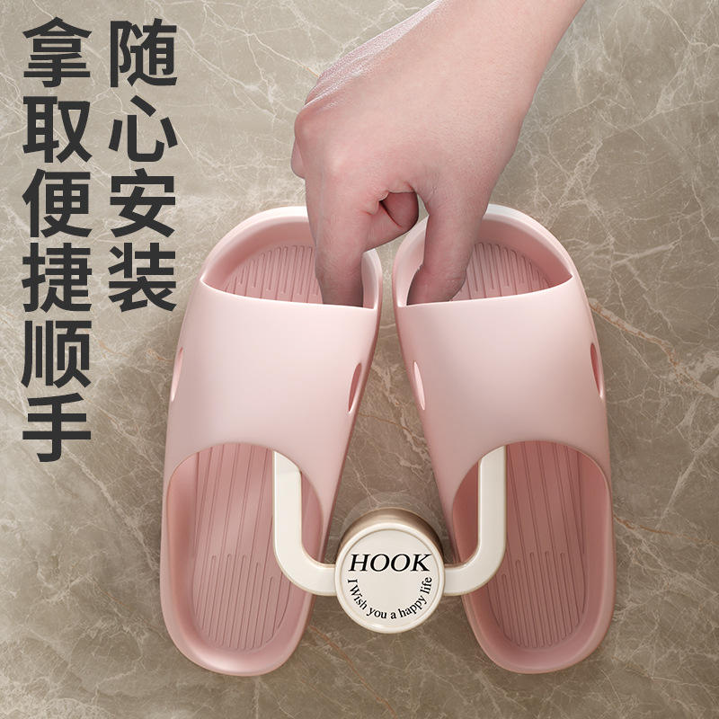Support mural pour pantoufles de salle de bain, installation sans perçage, pour rangement d'entrée et de toilettes, gris et blanc, 1 paire