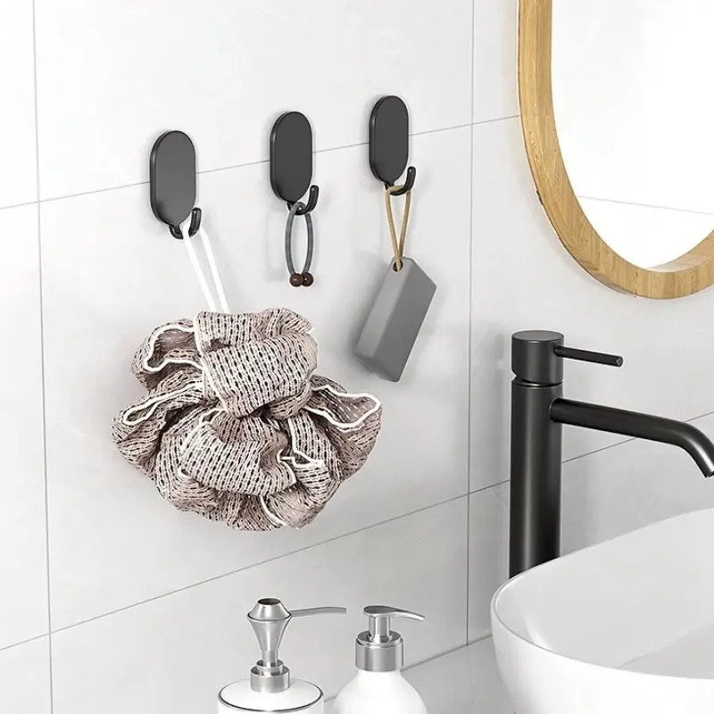 Crochet adhésif puissant sans perçage pour porte de cuisine ou de salle de bain, sans traces sur le mur arrière, crochet en acier inoxydable