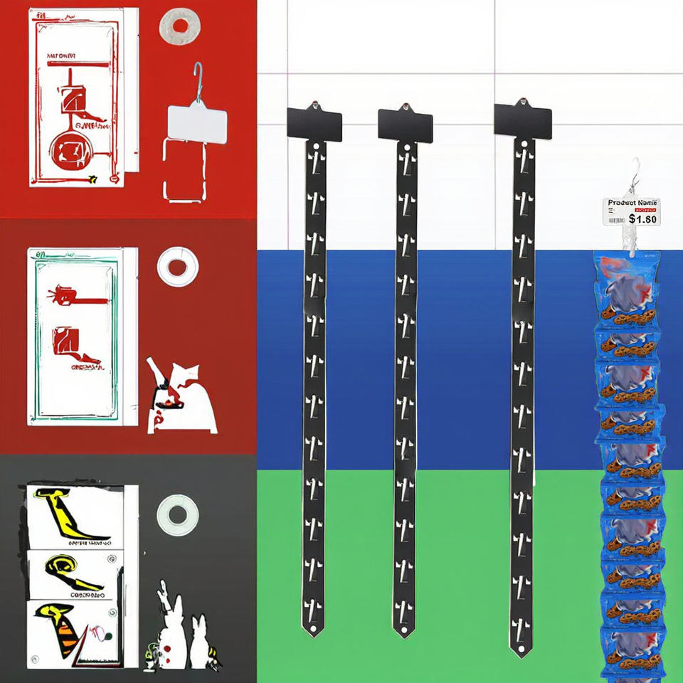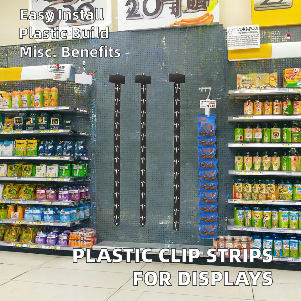 Bandes de présentation suspendues Hookei avec crochets (PP/PVC) pour les marchandises des magasins de détail - Clips de présentation faciles à installer pour les collations