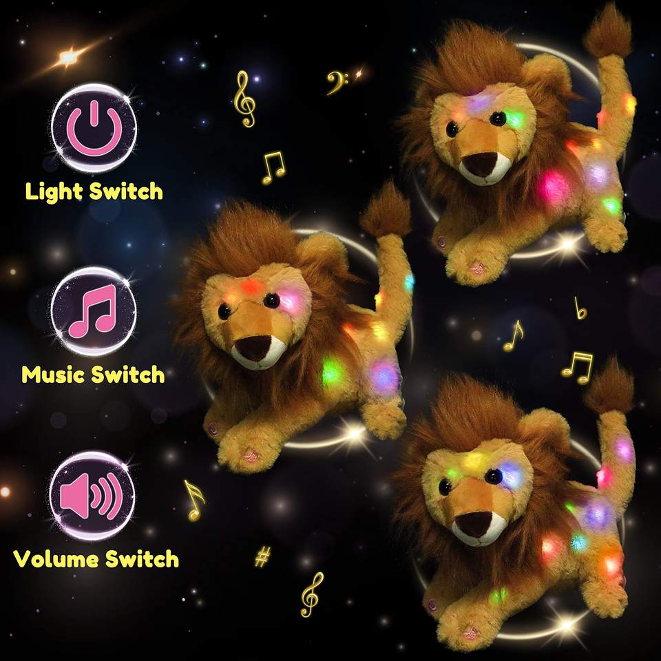 Hopearl – peluche de Lion Musical à LED, jouet en peluche chantant, Volume réglable, berceuse animée, apaisement, Festival d'anniversaire pour enfants