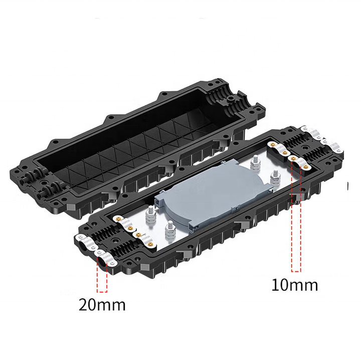 Fermeture d'épissure à fibres optiques horizontale 2 en 2 sorties IP68 étanche, noyau 12-288 pour antenne extérieure/enterrement/boîte de joint de câble FTTH