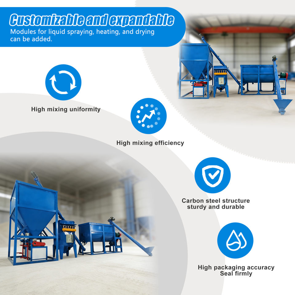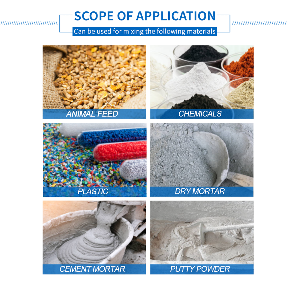 Mélangeur horizontal à double ruban automatique pour le mélange de poudres sèches, de produits chimiques, de plastiques, d'amidon de maïs modifié, de peinture à base de pierre naturelle