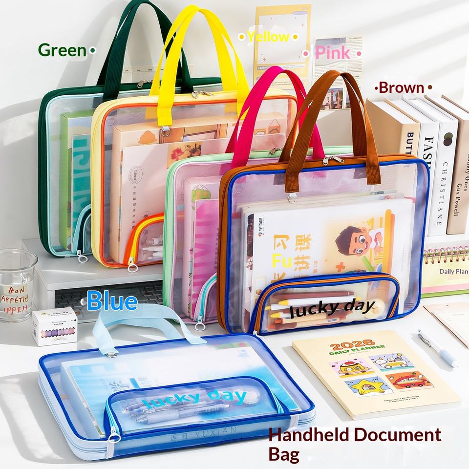 Sac à compartiments multiples à fermeture éclair en maille, format horizontal A4, grande capacité, portable, pour élèves du primaire et du secondaire, modèle 680