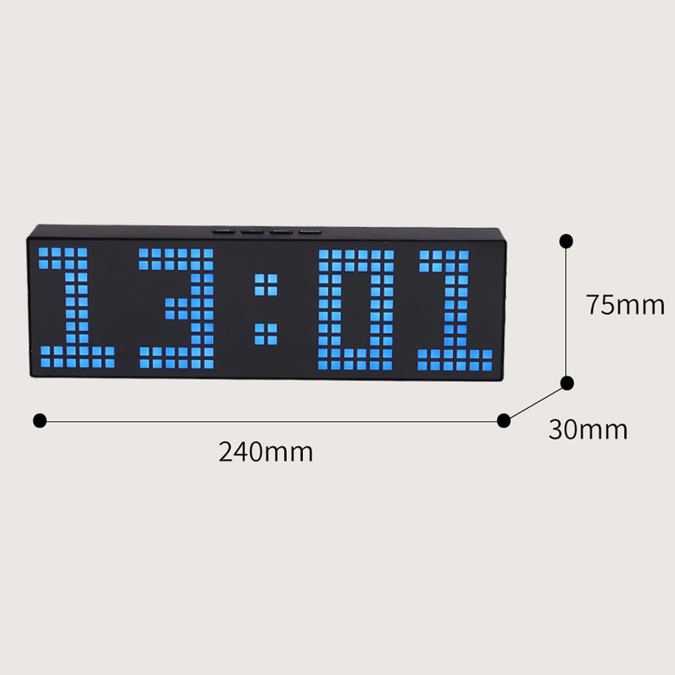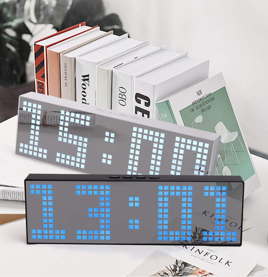 Horloge numérique à matrice de points LED horizontale, 2 pièces, réveil, commande sonore, veilleuse, compte à rebours, compte à rebours, chambre à coucher, bureau
