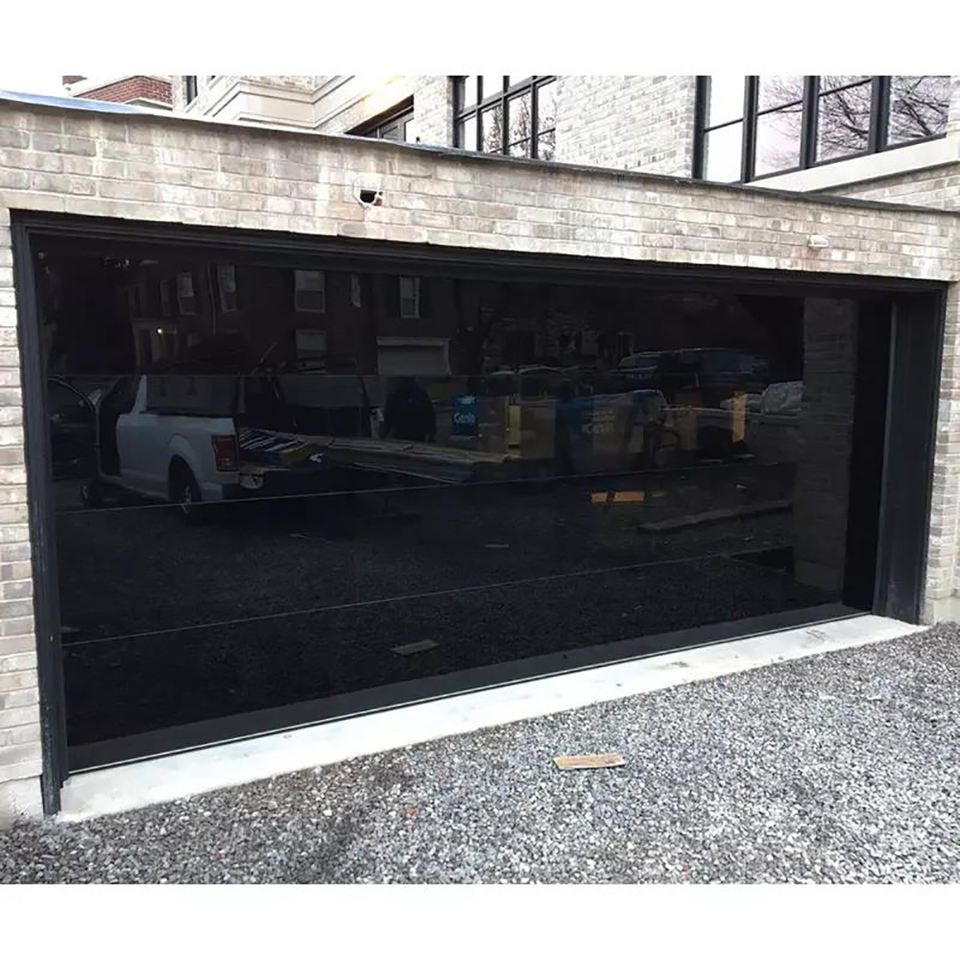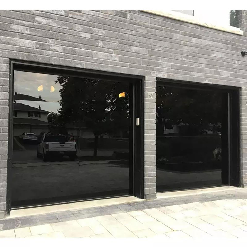 Porte de garage transparente creuse en alliage d'aluminium finition verre, anti-effraction, moderne et personnalisée Hormann pour villa