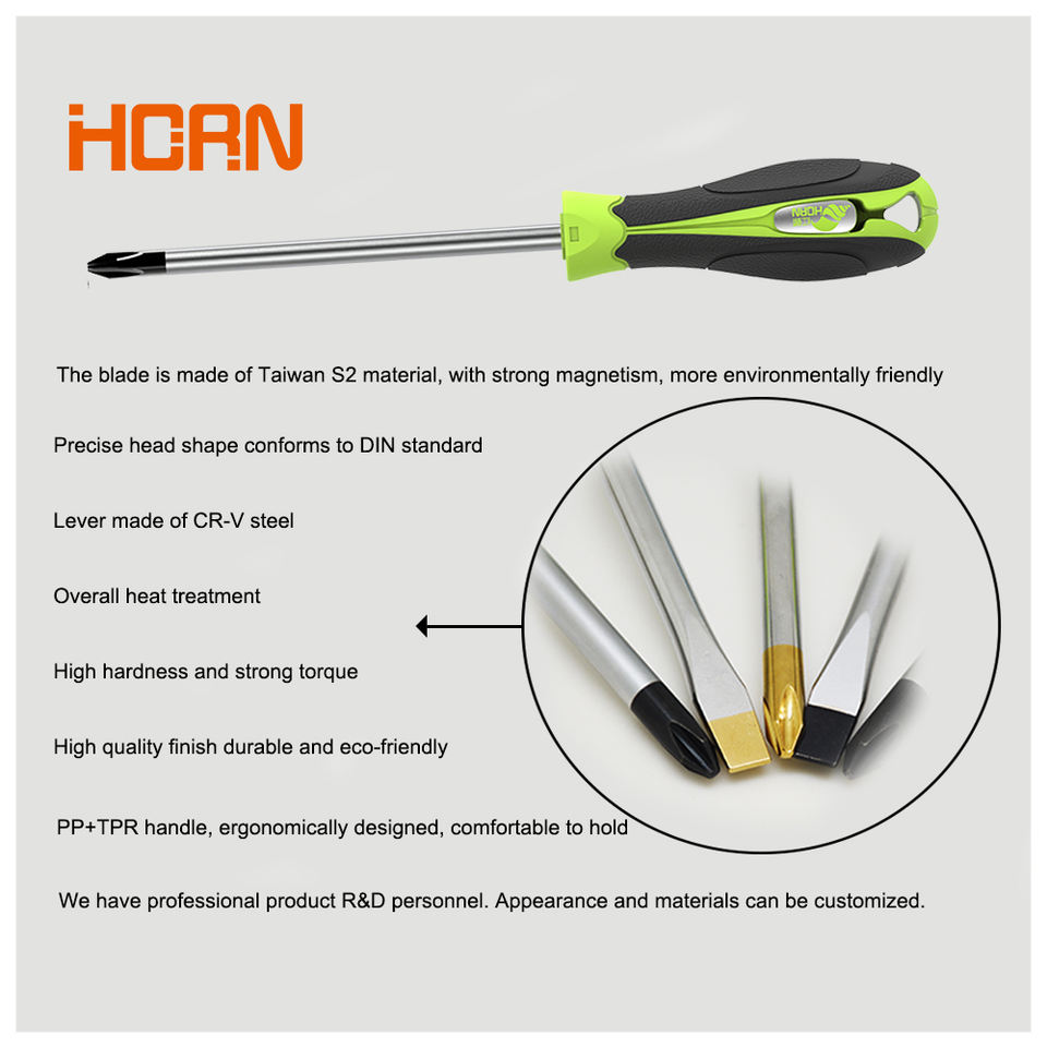 Horn Magnetic Tips Cross Slotted Screwdrivers Screw Driver Phillips Screwdriver S2 Tool Steel Flat Blade Slotted Screwdriver