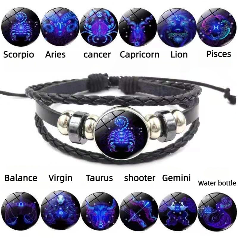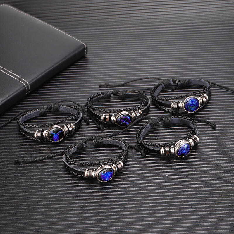 Bracelet en cuir tressé lumineux avec signe du zodiaque chinois, bijou porte-bonheur, bracelet qui brille dans le noir, astrologie