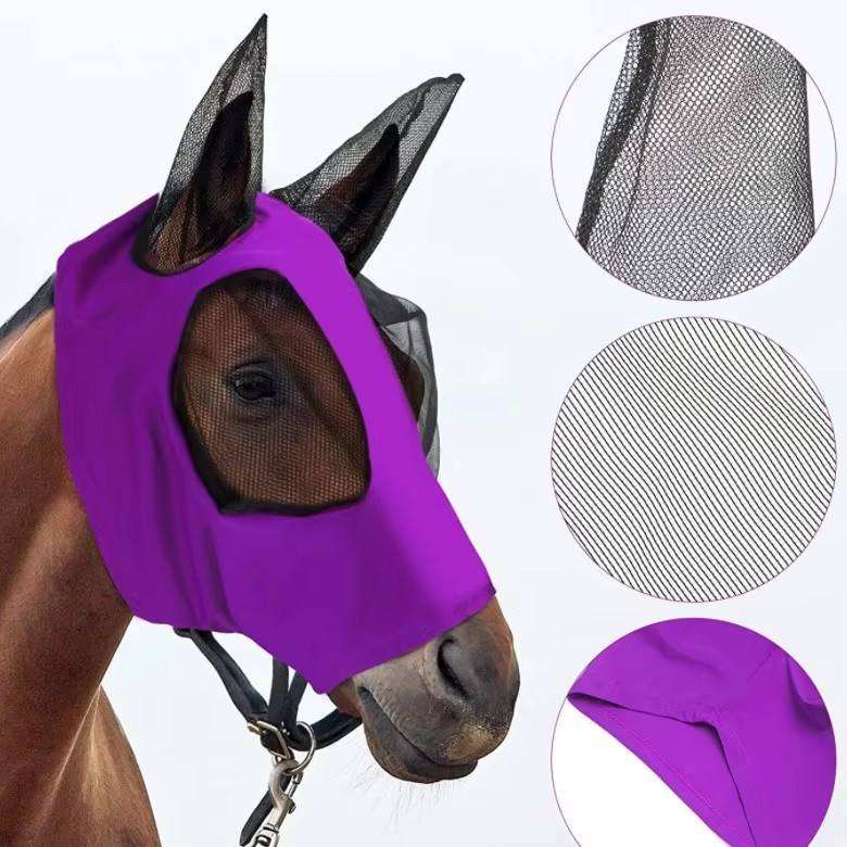Mots-clés:Masque anti-mouches pour cheval en maille respirante avec protection des oreilles