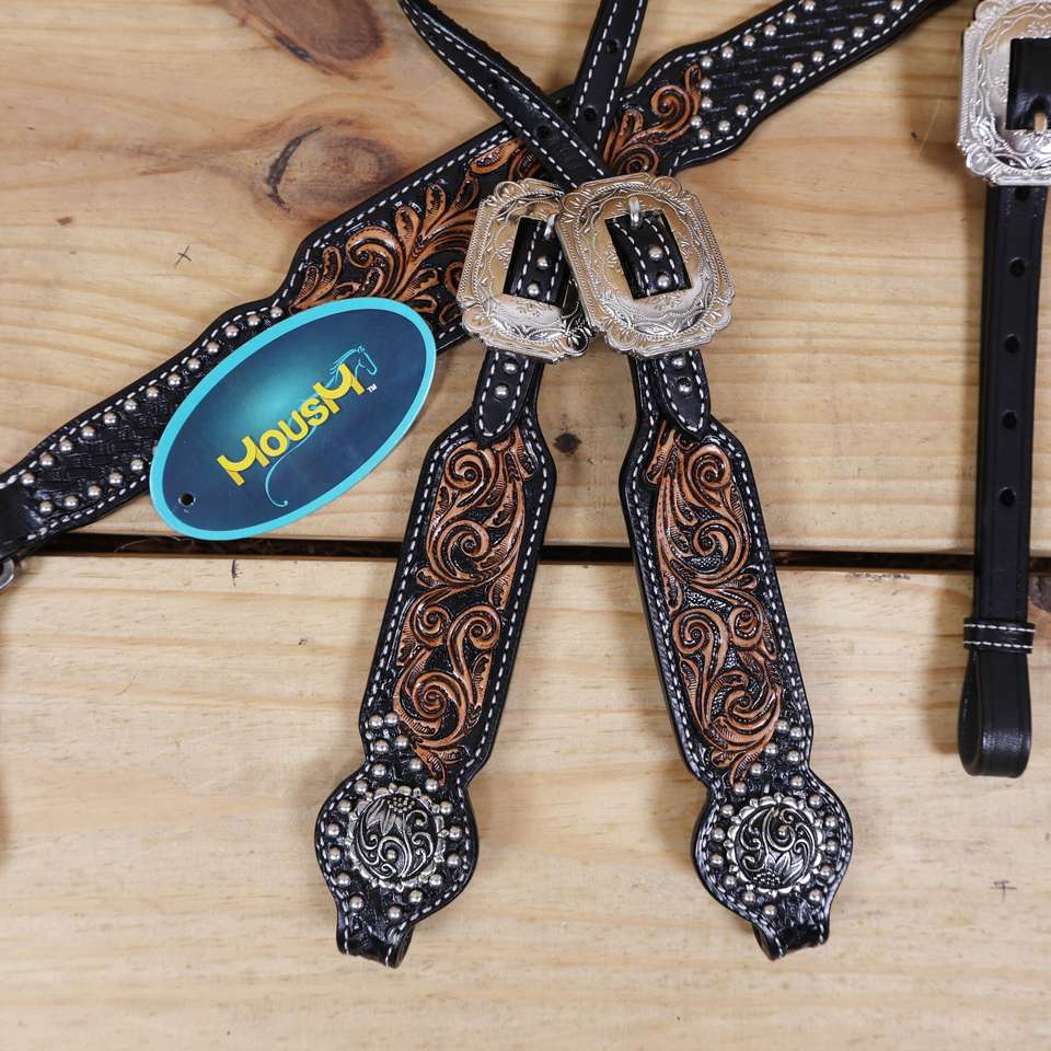 Horse Headstall Breast Collar Set Tack Cow Leather Genuine Leather Customized logo Western Products Seasonal with Rainbow Color