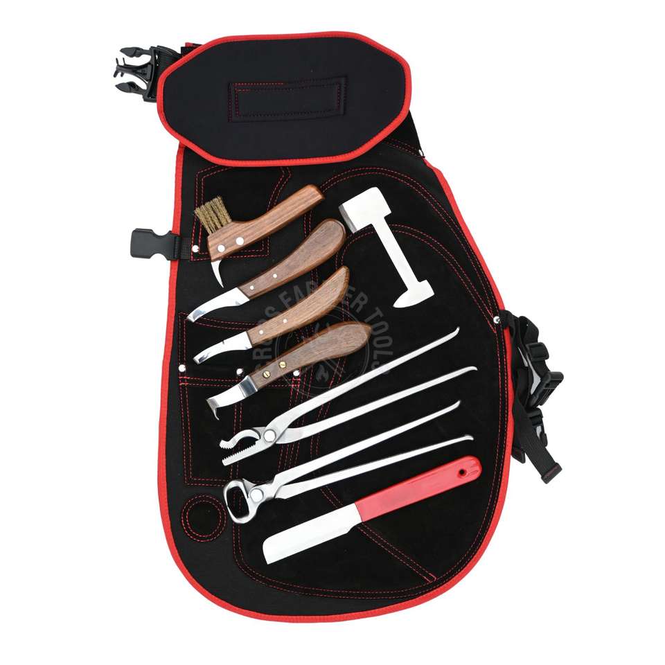 Mots-clés:Trousse d'outils de maréchal-ferrant, kit de coupe de sabots de cheval, tablier de maréchal-ferrant en cuir