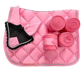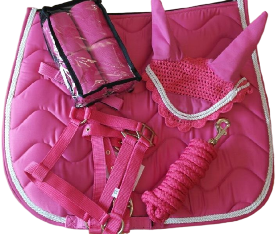 Quilted Saddle Pad Set with Fly Veil, Halter with Rope & Bandages | Complete Horse Tack Set