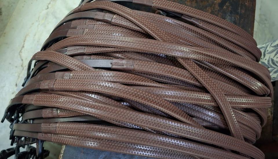 Équitation en cuir indien de haute qualité équestre 4/8 rênes en caoutchouc avec boucles à main goujons d'extrémité d'embout vente entière disponible