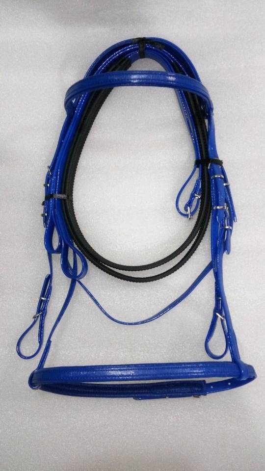 Bridon d'équitation en cuir PVC de haute qualité avec ferrures argentées, bleu, personnalisable, confortable, international