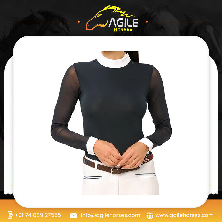 Haut de couche de base de chemise d'équitation pour femmes de qualité supérieure sur tissu technique Fabrication en vrac de vêtements équestres personnalisés