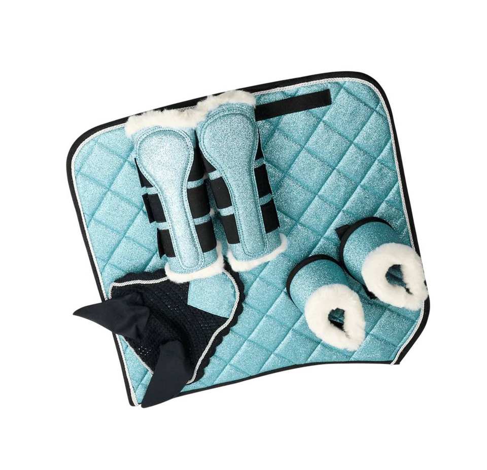 TARIQ MFG CO-Ensemble de coussins de selle pour chevaux avec bottes matelassées scintillantes et bonnet d'oreille assorti