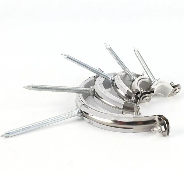 Collier de serrage avec clous PVC blanc et deux vis pour la fixation de clous et boulons d'ancrage supplémentaires Outils de forage pour collier de serrage