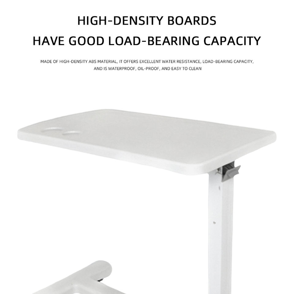 Table de lit d'hôpital à roulettes, bureau surélevé réglable en hauteur pour patients, personnes âgées, utilisation à domicile avec ordinateur portable