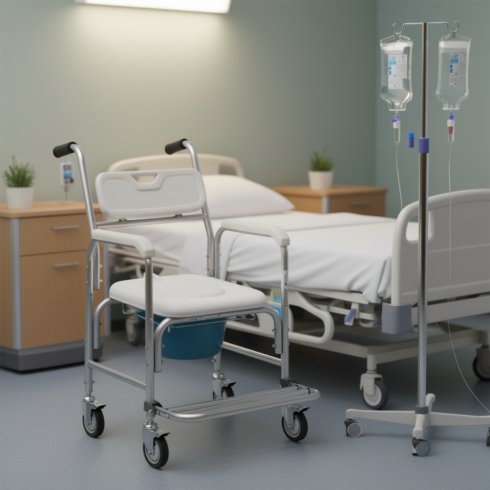 Chaise d'hôpital, commode de chevet, capacité de 350 lb, 4 roues, siège de toilette surélevé, modèle D0100X32XB6