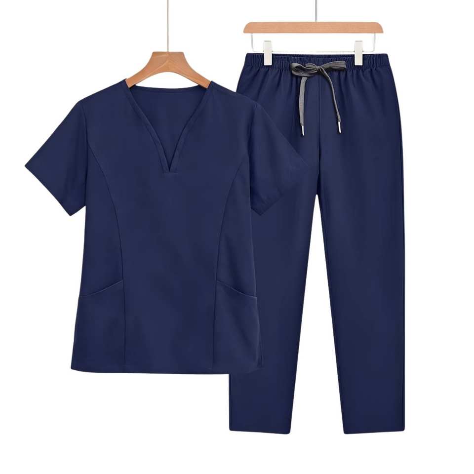 Tenues d'hôpital pour hommes : Ensemble de blouses médicales et pantalons droits en mélange de coton respirant à col en V – Fabricant