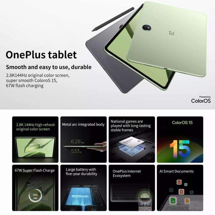 Tablette PC OnePlus Pad 11,61 pouces, 8 Go + 128 Go, ColorOS 15.0, Dimensity 8350 Octa Core