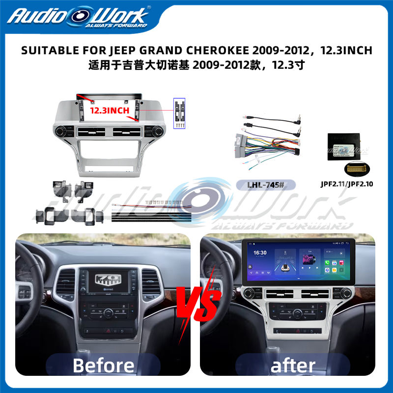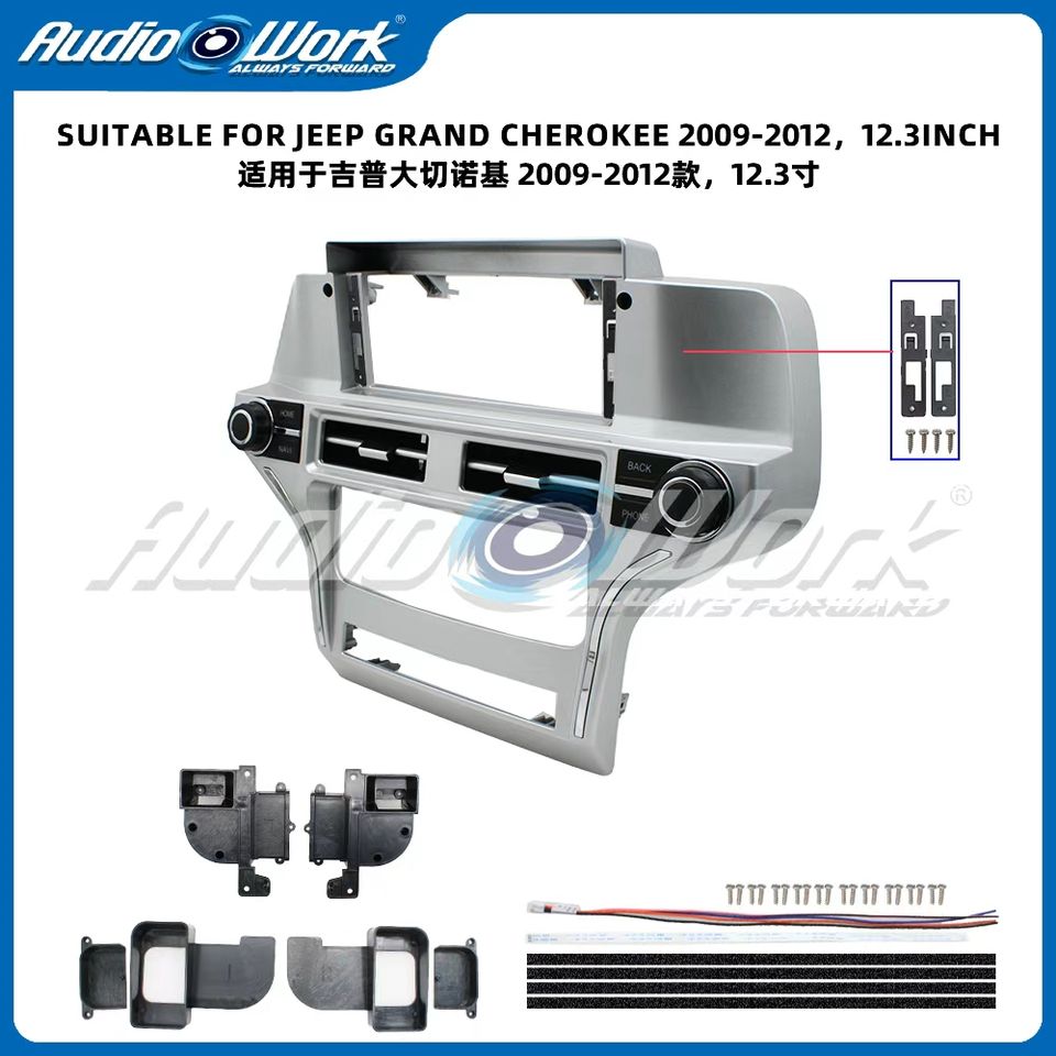 Nouveau cadre radio Android 12,3 pouces pour Jeep Grand Cherokee 2009-2012, kit de tableau de bord avec écran tactile et cadre de radio de voiture compatible CarPlay