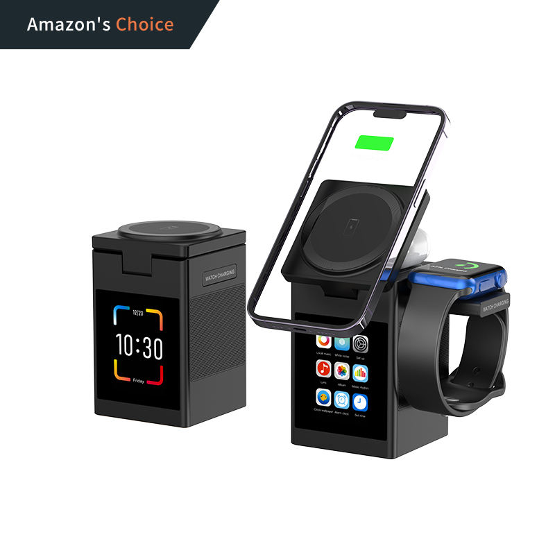 Chargeur sans fil 6-en-1 avec animation de pixels et haut-parleur