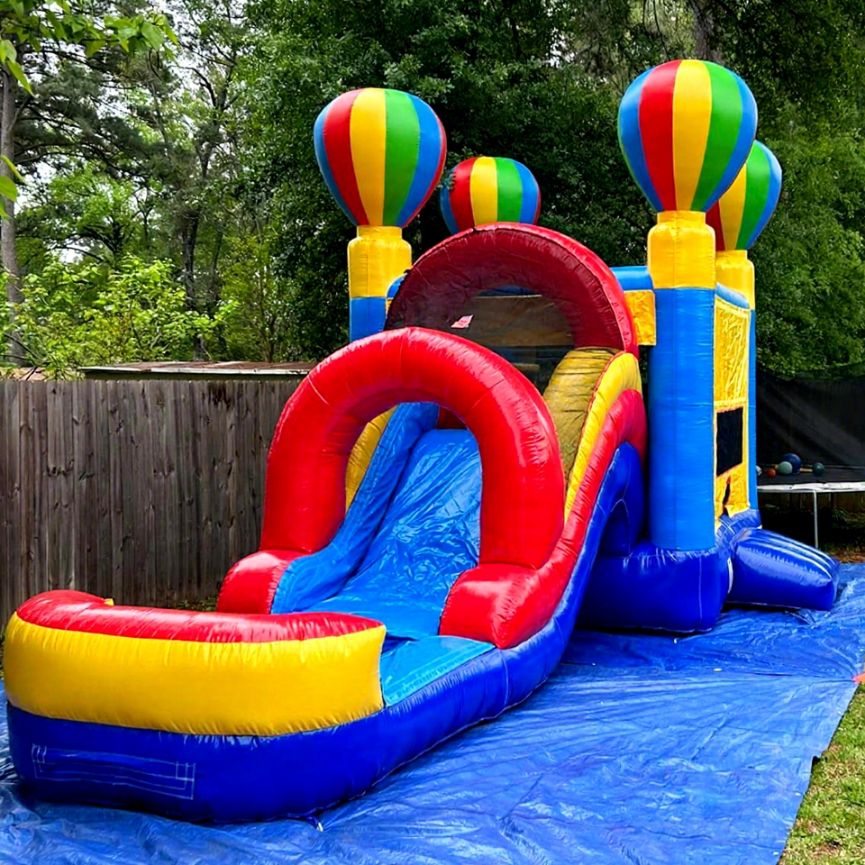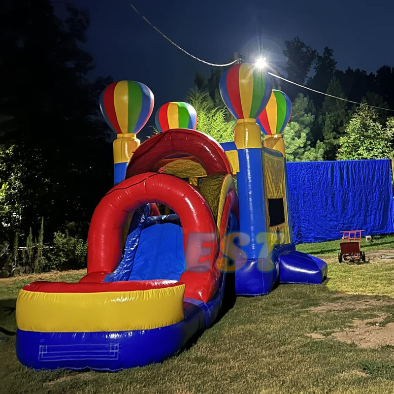 Château gonflable combiné avec ballon à air chaud, toboggan aquatique gonflable extérieur, château gonflable avec toboggan