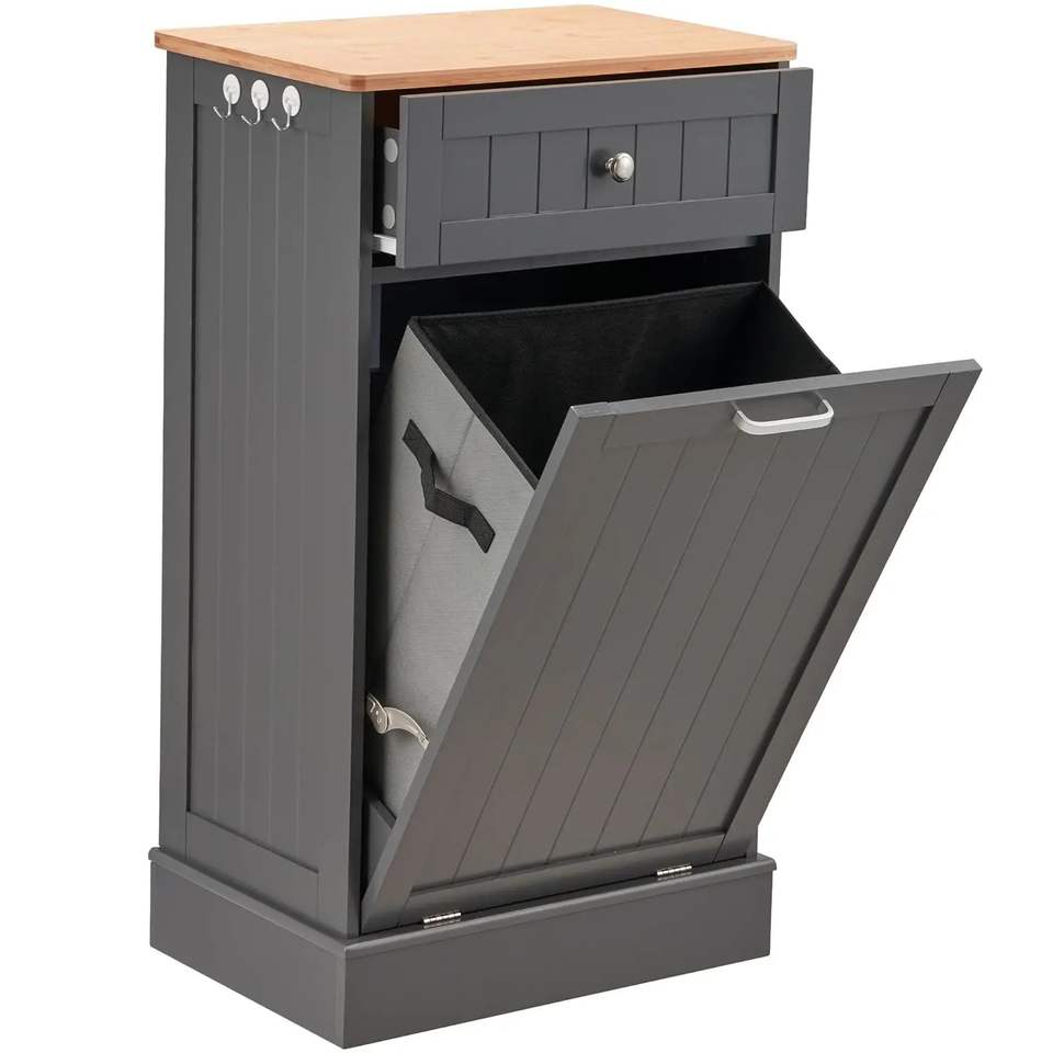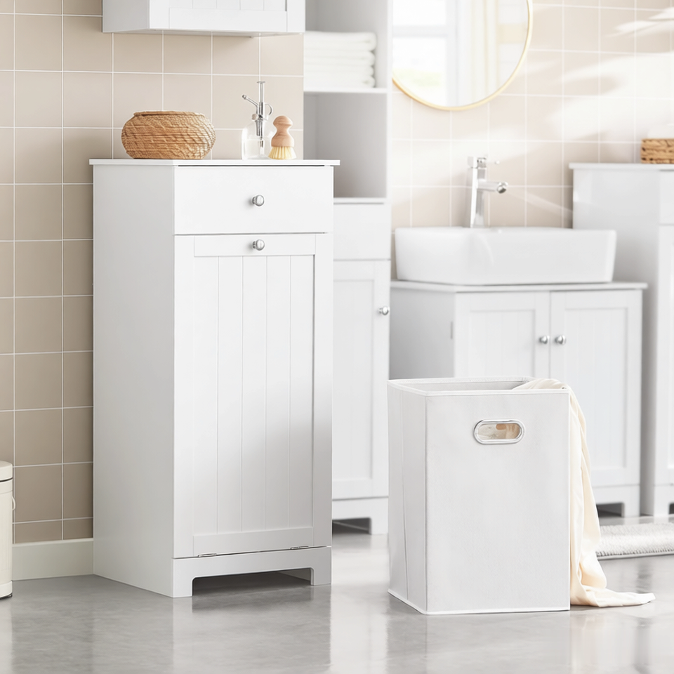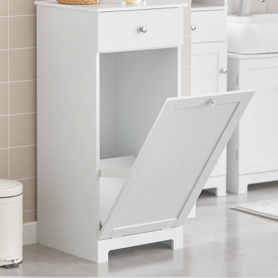 Meuble de rangement de salle de bain avec tiroir et panier à linge inclinable, armoire de rangement de salle de bain avec panier