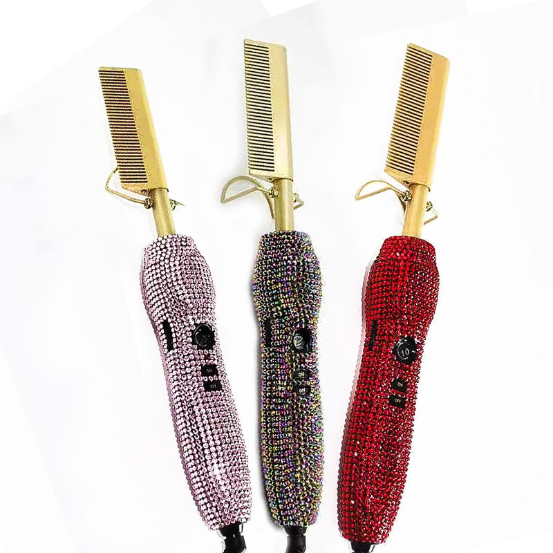 Peigne chaud bling professionnel ionique en alliage de titane ventilateur peigne brosse à Air chaud sèche-cheveux lisseur électrique peigne à cheveux