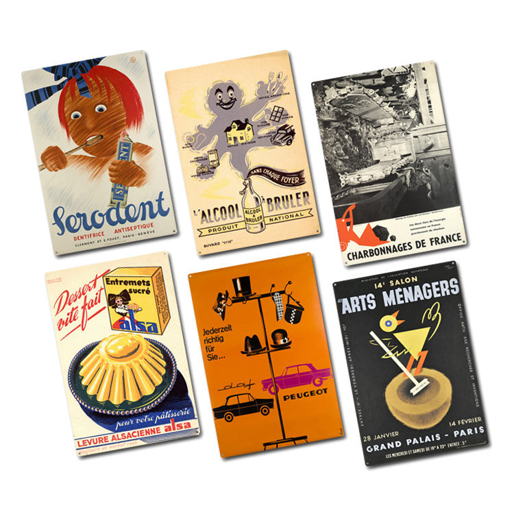 Chaud personnalisé UV impression Paris élégance métal signe Restaurant mur Art France spécial alimentaire étain signe rétro métal mur affiche
