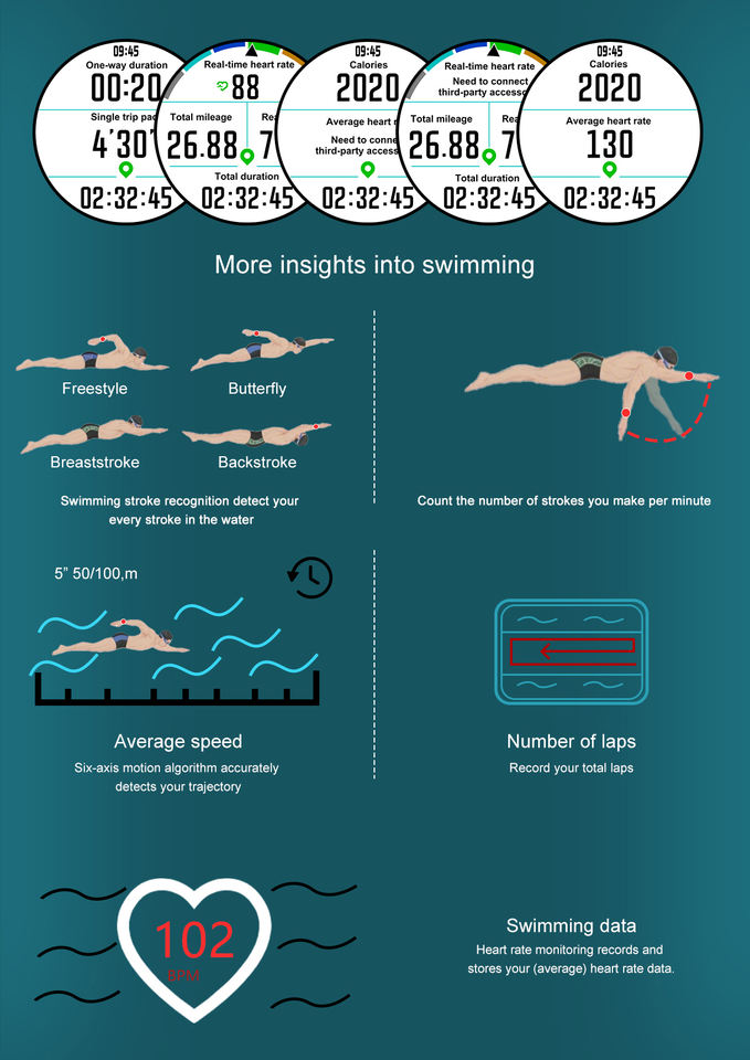 Fonction:Activité Tracker, Alarme horloge, Altimètre, Répondre à un appel, Traqueur de Distance, Boussole, Pisteur fitness, Fréquence cardiaque Tracker, Navigation gps, positionnement
