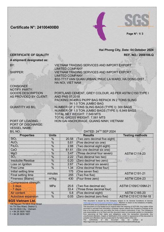 Item name:52.5 N/R Portland Ciment