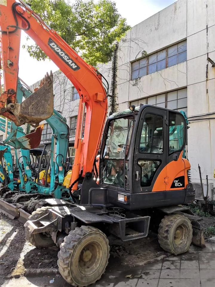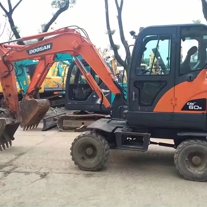 Offres spéciales dernière arrivée Doosan seconde main DX60W pelle sur pneus haute performance bonne condition de fonctionnement machines de construction