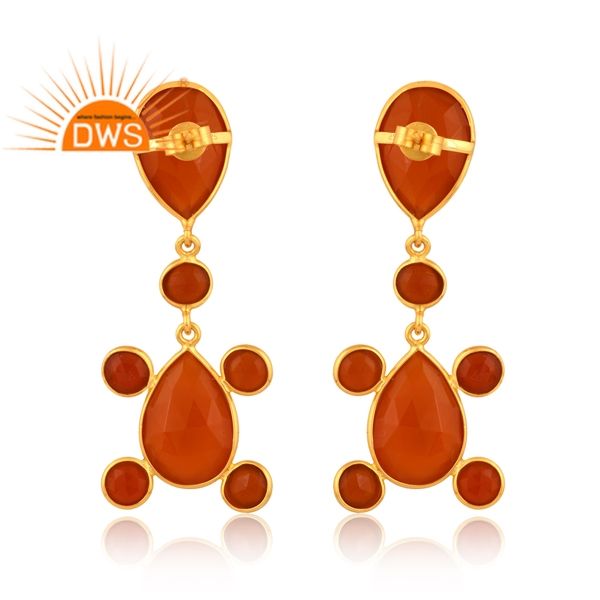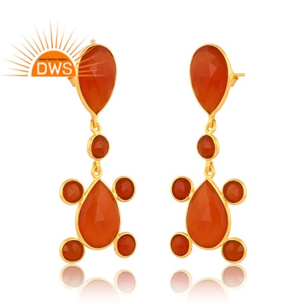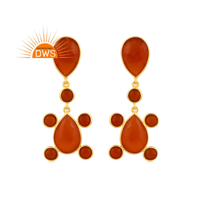 Hot Design 925 Sterling Silver 18K Plaqué Or Naturel Rouge Onyx Gemstone Dangle Boucle D'oreille Demi Fine Fabricant De Bijoux