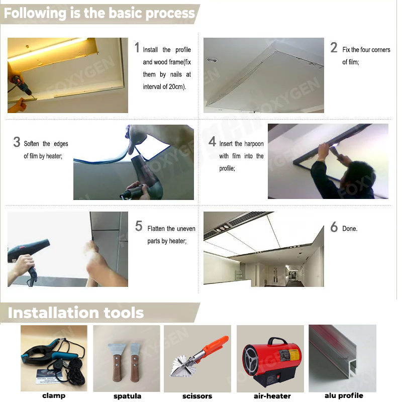 Plafond suspendu en tissu au design tendance, film PVC souple, plafond tendu pour la décoration intérieure du salon