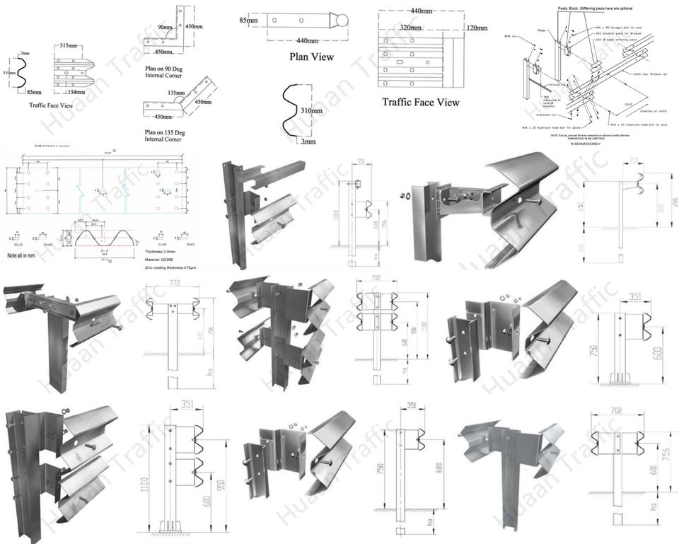 Barrière de sécurité galvanisée à chaud en forme de W à double vague pour routes rurales, barrière de circulation anti-collision