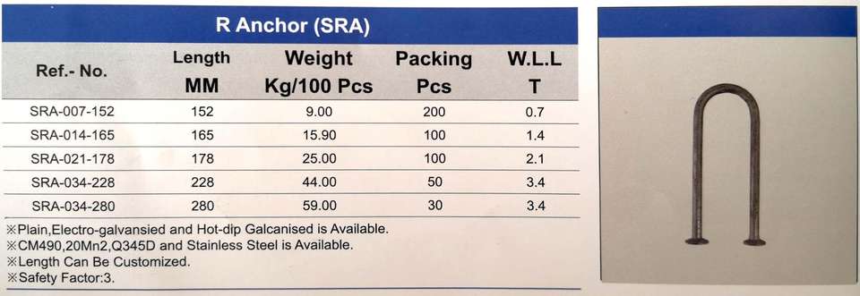 Hot-Dipped Galvanized R-Anchors for Precast Concrete Elements and Heavy Blocks Lifting & Handling