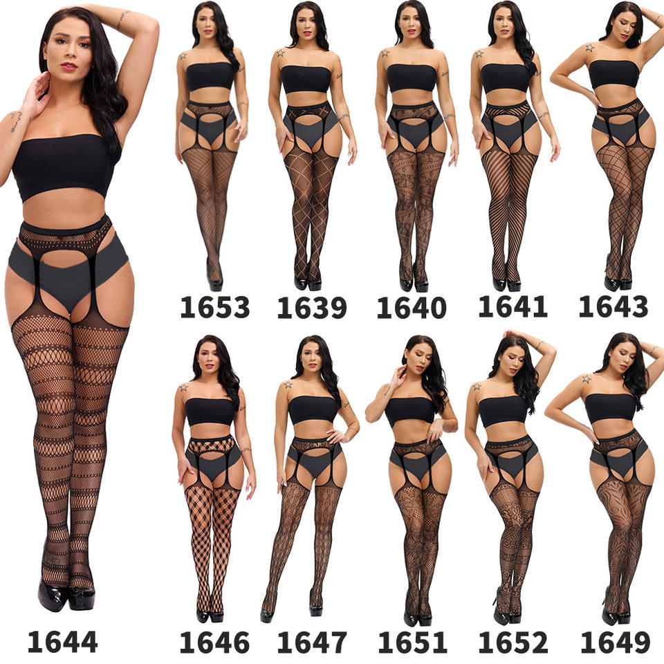 Conception érotique chaude Lingerie en résille noire sexy-entrejambe ouvert sans enlever Passion Tear Tease bas de jarretière en dentelle transparente