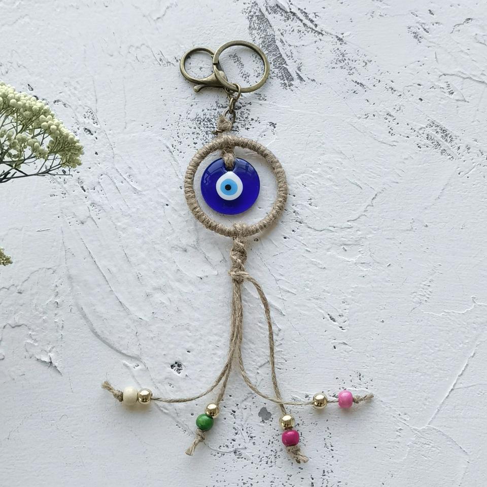 Cadeau tendance : Porte-monnaie porte-bonheur turc en alliage de zinc avec œil bleu et main de Hamsa - Pendentif pour sac/voiture/décoration intérieure