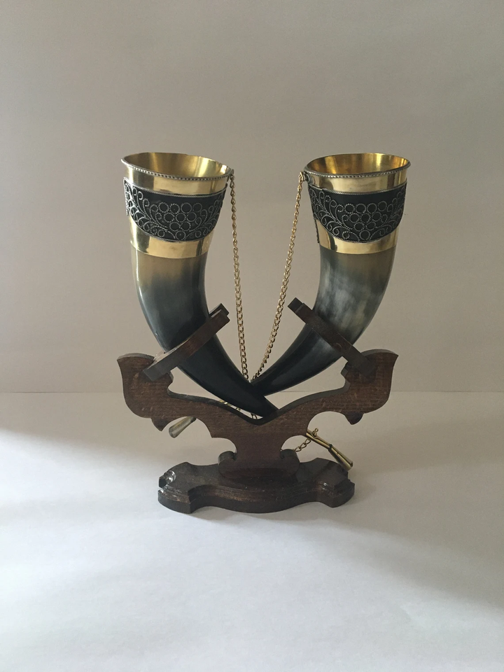 Hot Gifted Brass & Natural Color Horn Decorative Beer Mug Viking Drinking Horn Glass Kitchen Accessories Viking Mugs Most