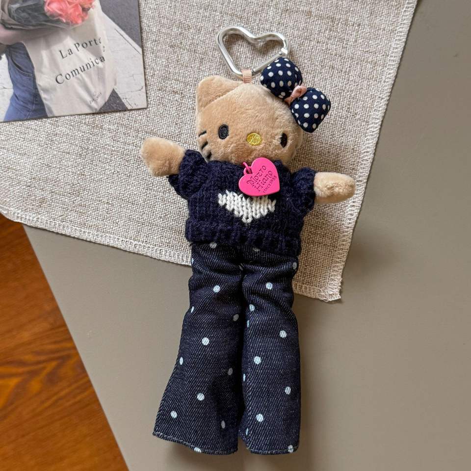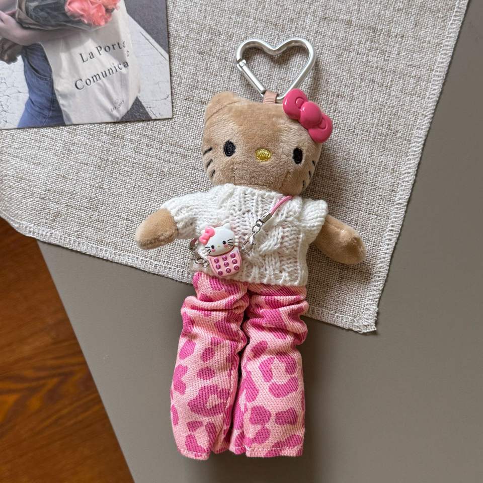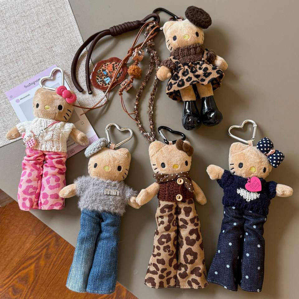 Porte-clés pendentif Hello Kitty en cuir noir à imprimé léopard, style Wasteland, pour sac à dos, nouvelle collection