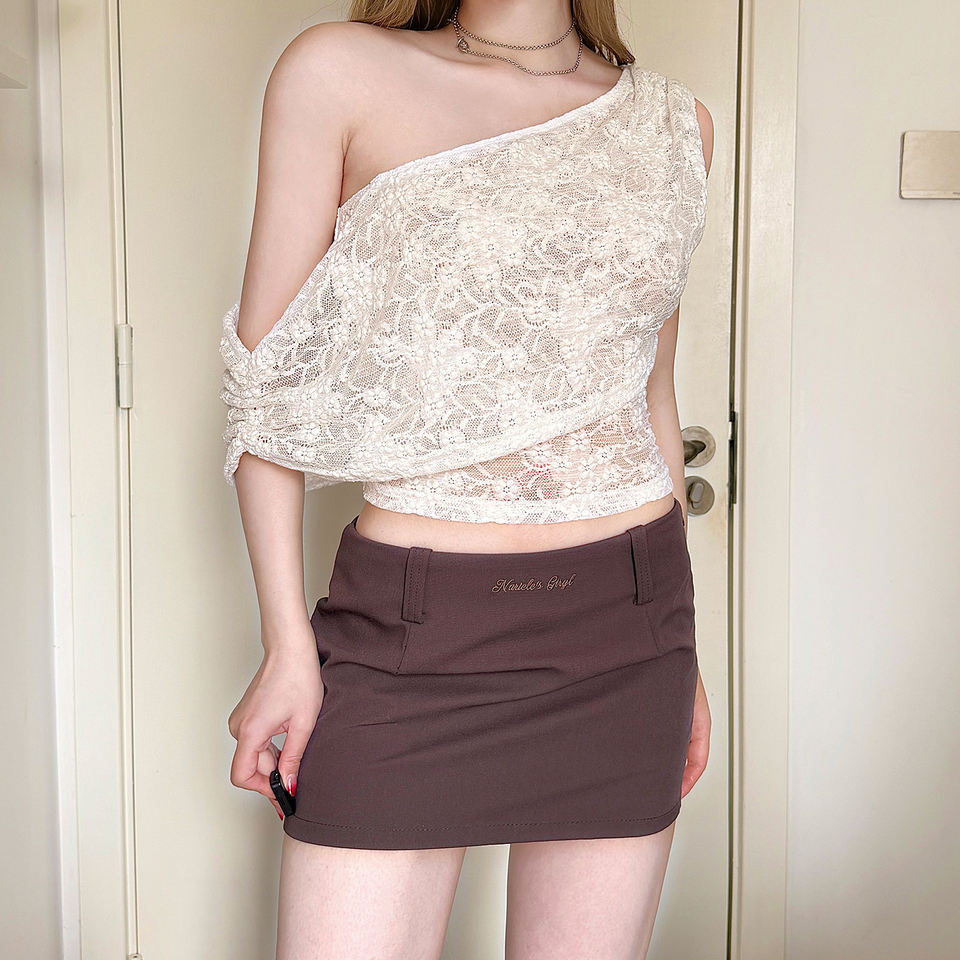 Top court asymétrique à épaules dénudées style Hot Girl, patchwork de dentelle, style designer de niche, blanc ajouré, à porter de deux façons
